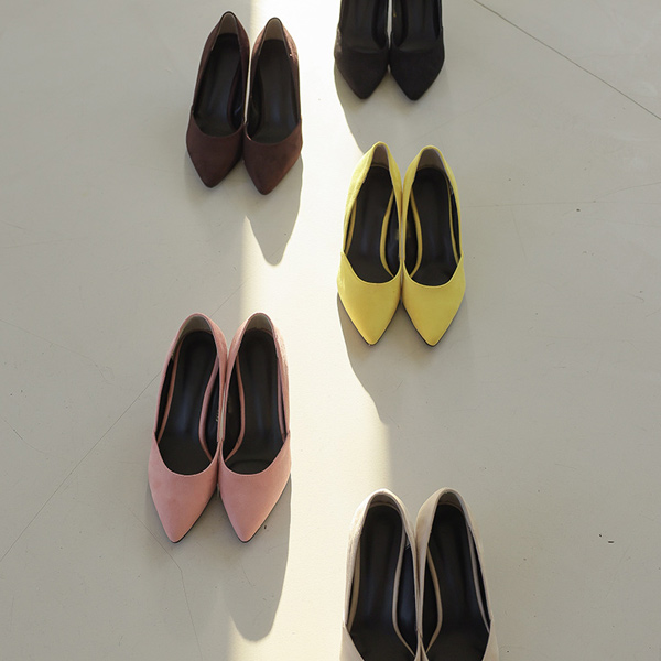 哑光 翻毛皮 女式浅口便鞋 细高跟 高跟鞋