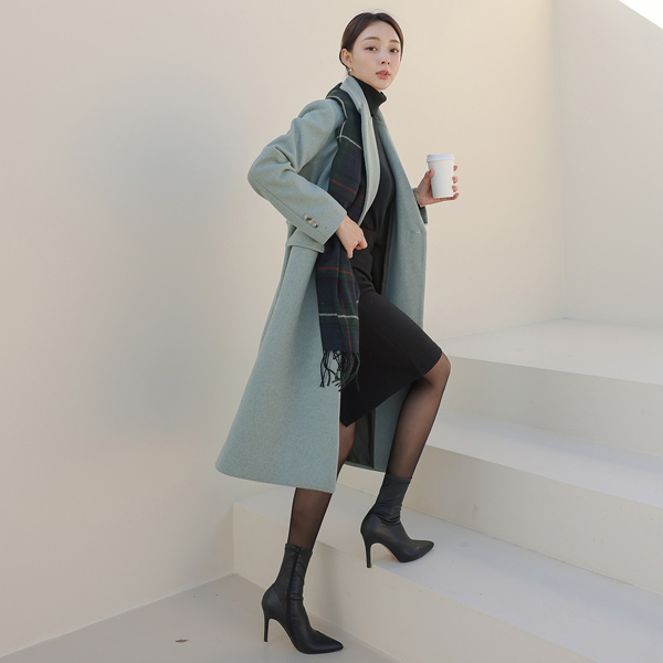 简单 一字型 包 束带 羊毛 大衣