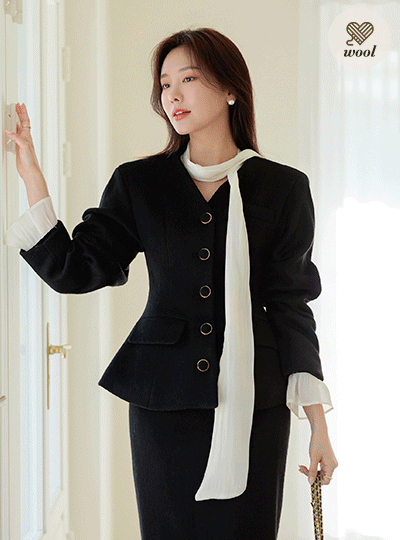 曲线 袖 柔软的 羊毛 斯利姆 线条 夹克