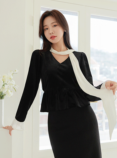 Holiday 领带 点缀 丝绒 罩衫