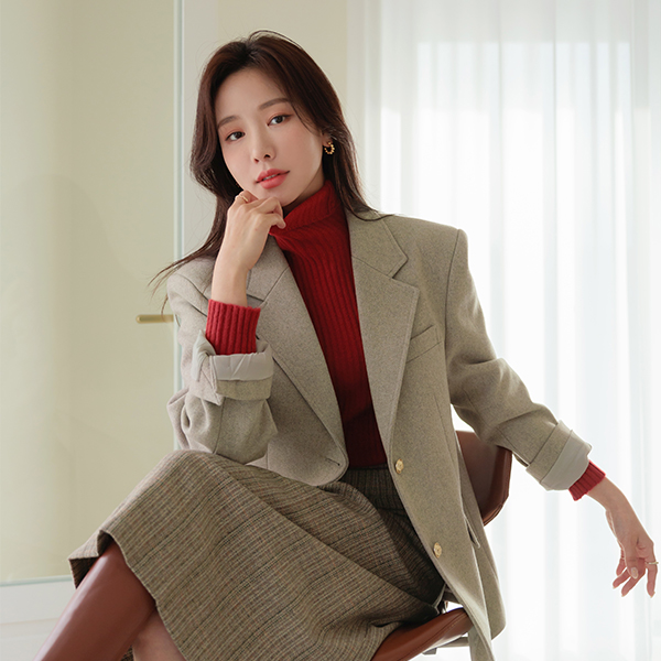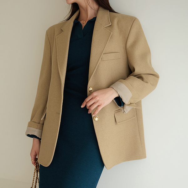[O:neul] 舒适的穿着的 A字型 拉绒 弹力 领子 连衣裙