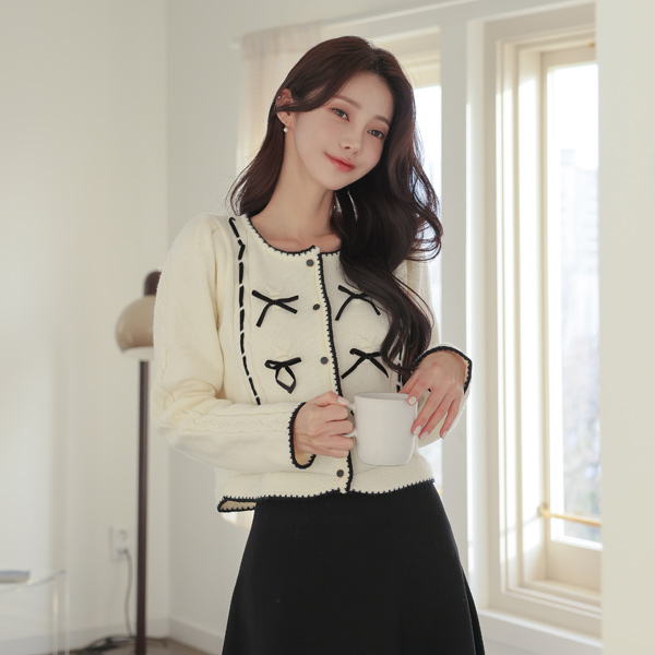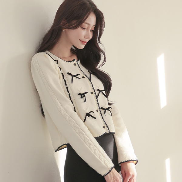 小方 蝴蝶结 点缀 配色 开衫