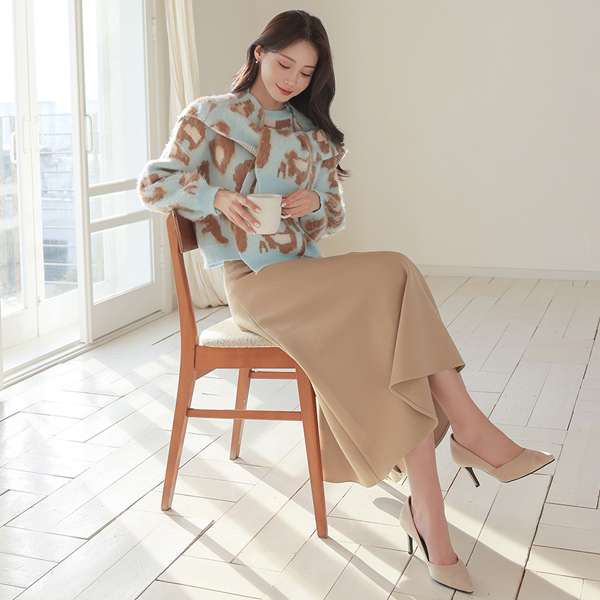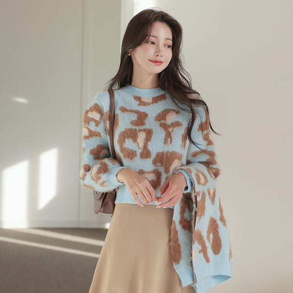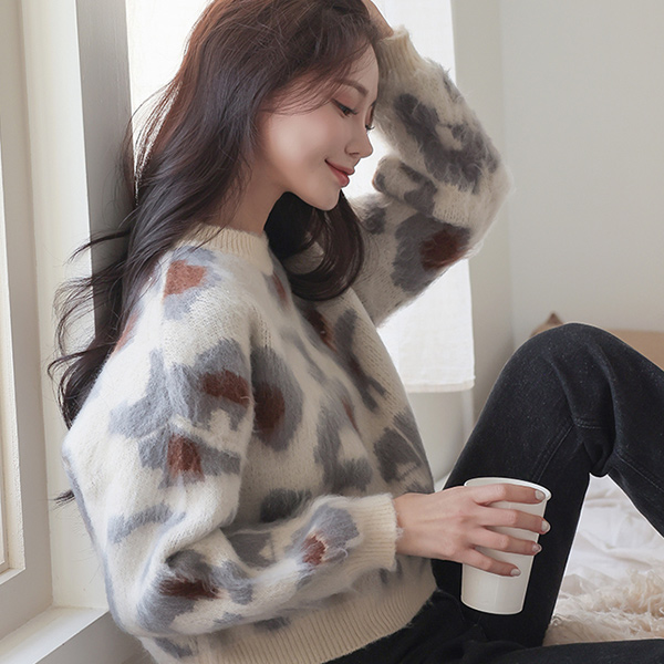柔软的 豹纹 图案 圆领 针织衫 & 肩膀 围巾