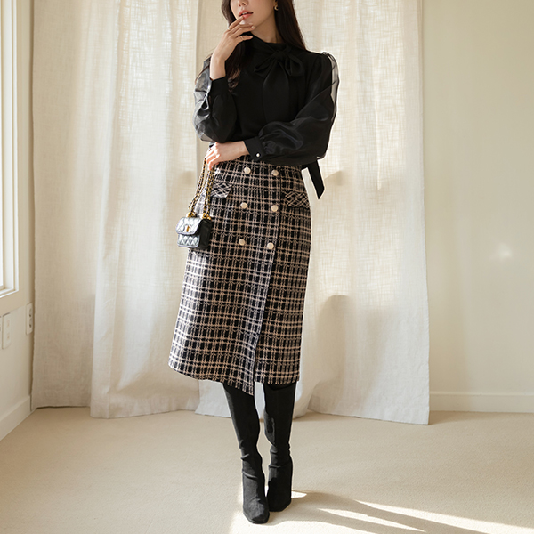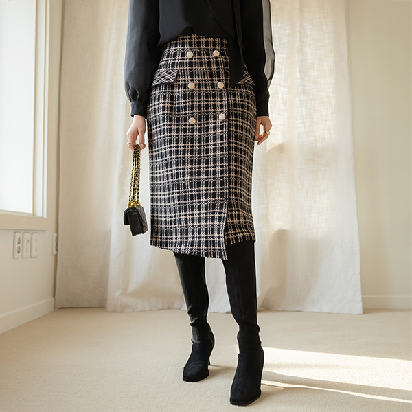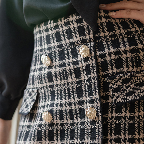 奢华裙 金色纽扣 针织衫 弹力 裙子
