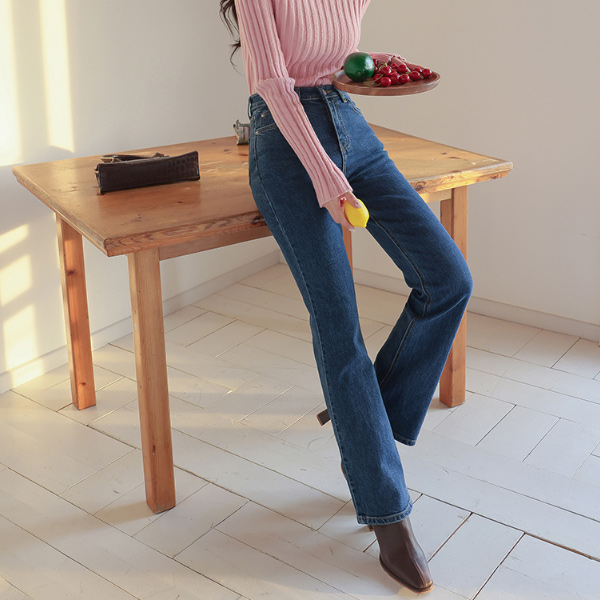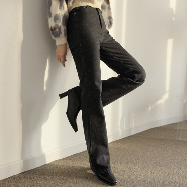 简单 长款 喇叭 牛仔色 裤子