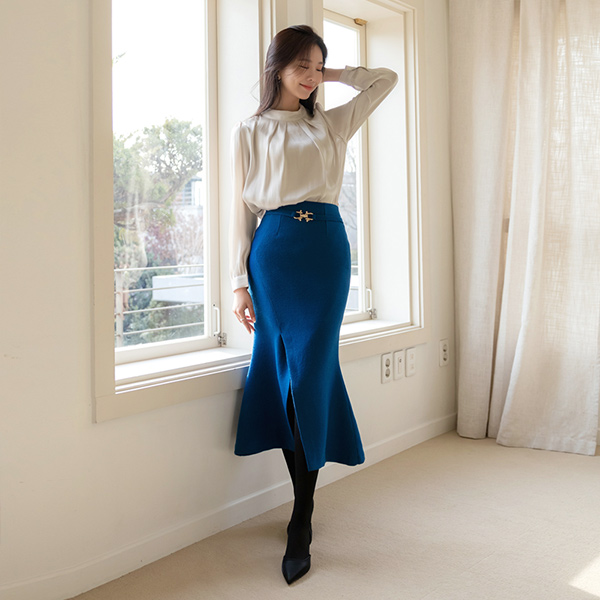 天鹅式 黄金 带扣 美人鱼 粗呢 羊毛 裙子