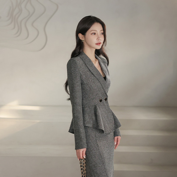 官方网站 原纱混搭 披巾领 双排扣 荷叶边 夹克