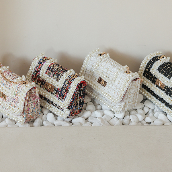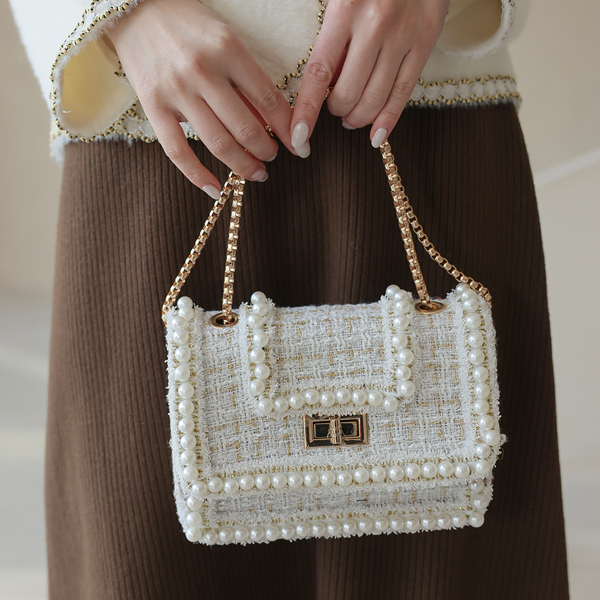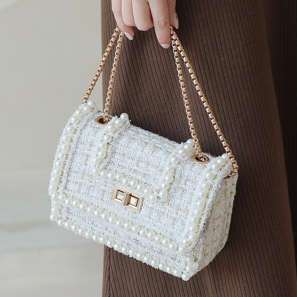 珍珠 衬里 粗呢 链条包