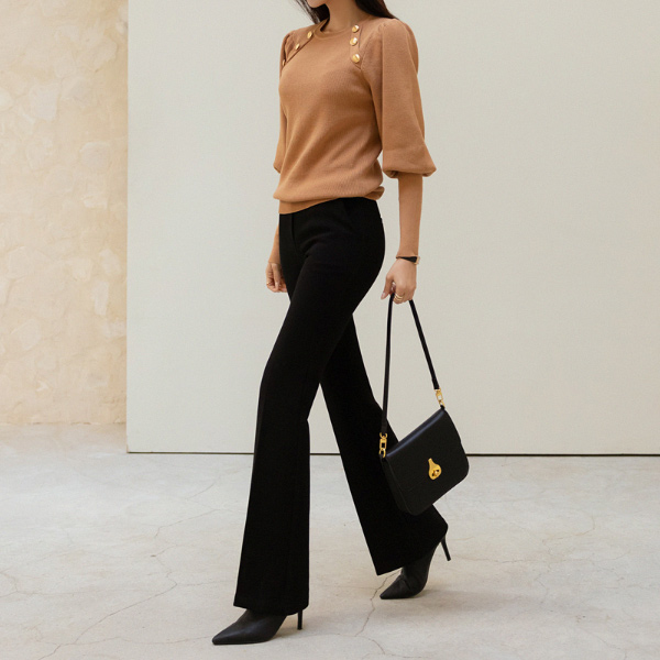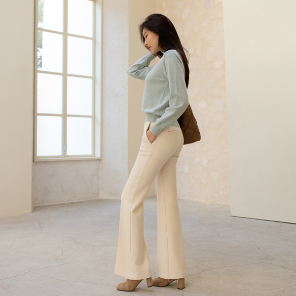 稍厚的 细密 喇叭 隐藏 后侧松紧带 宽松长裤 (winter)