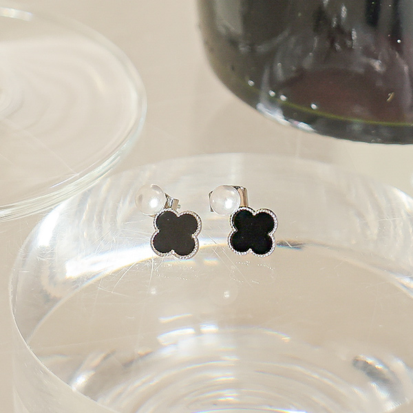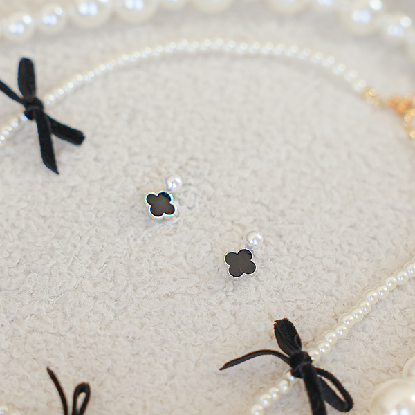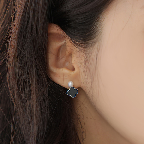 Black 四叶草 珍珠 耳环