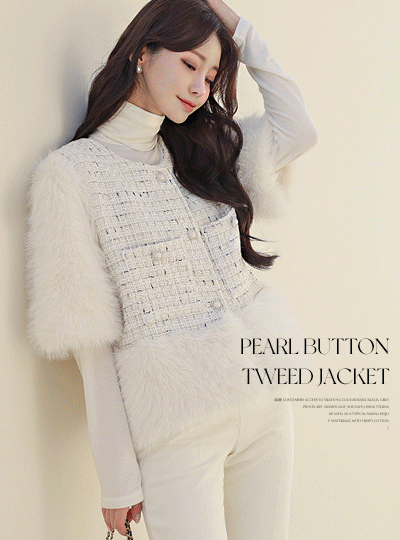 ECO-毛 配色 珍珠 扣子 粗呢 夹克