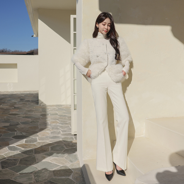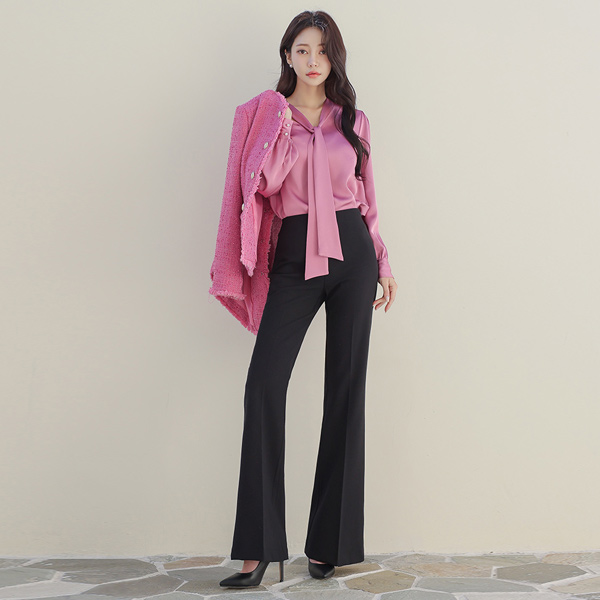 细密 弹力 高腰 喇叭 长款 宽松长裤(winter)