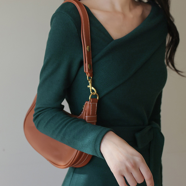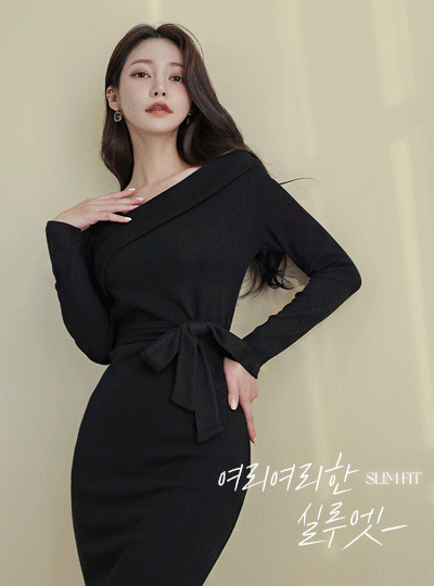 翻盖式 不规则领 斯利姆 条绒 长款 连衣裙