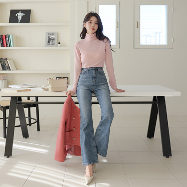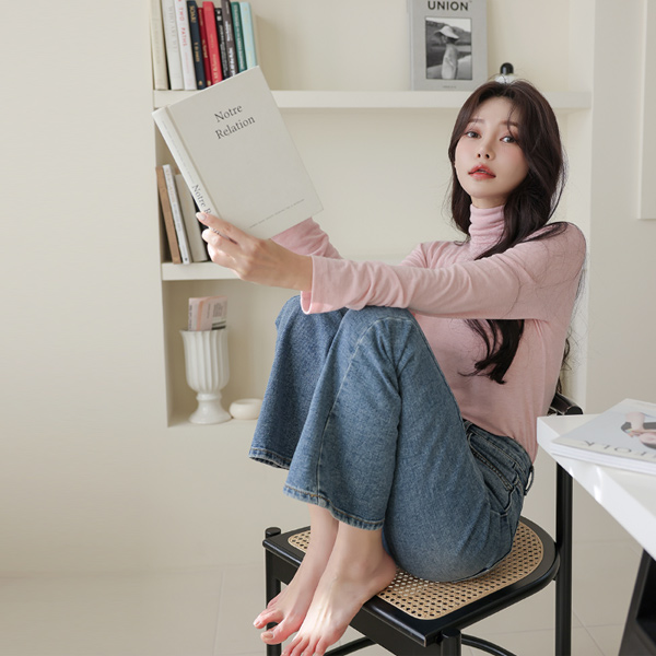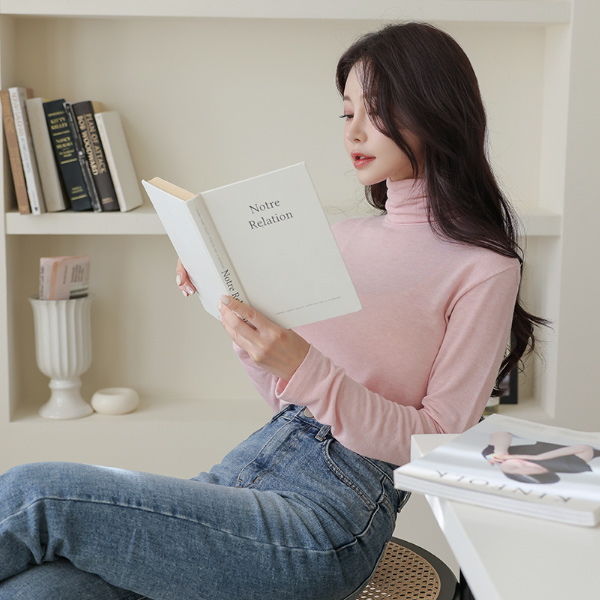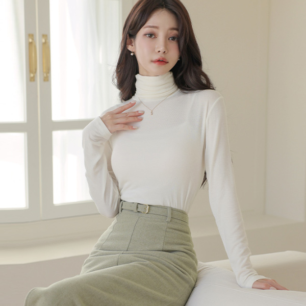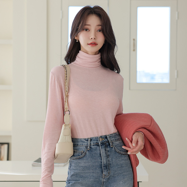 柔丝 颜色 羊毛 高领 T恤衫
