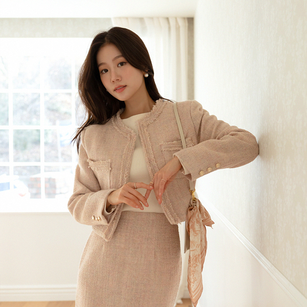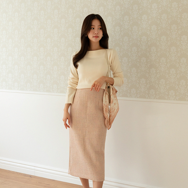 漂亮的版型 图案 船形领 Creamy 日常 针织衫