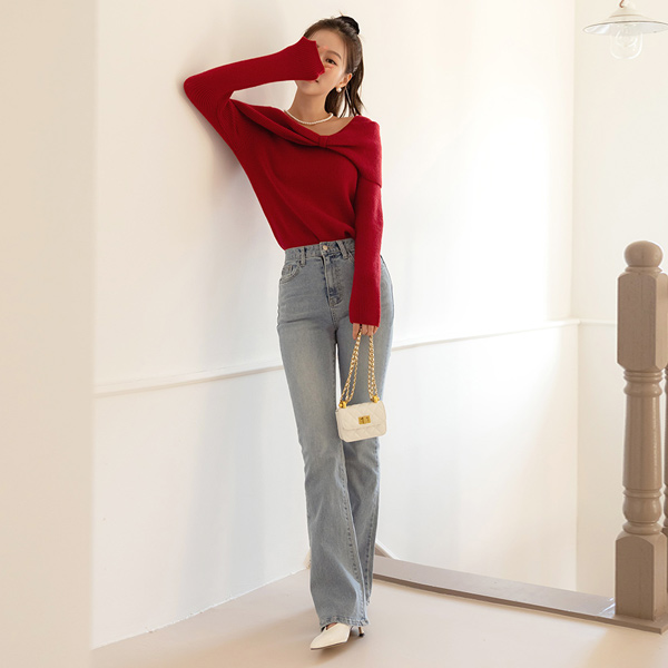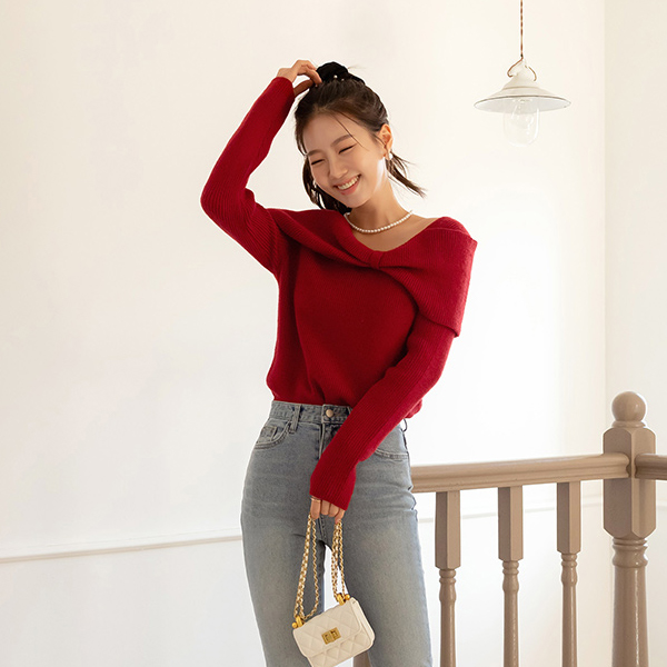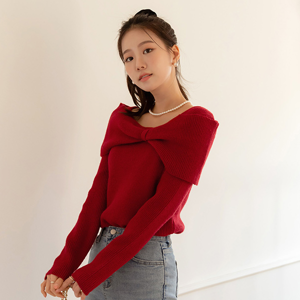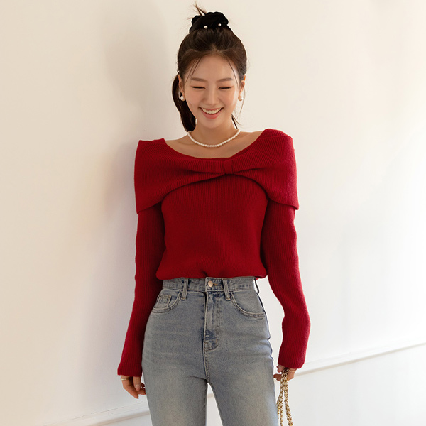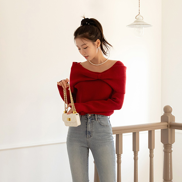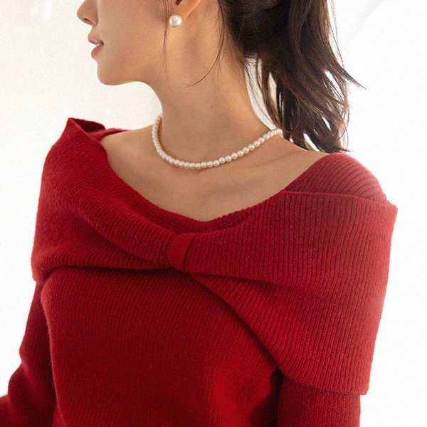 蝴蝶结 露肩 风格 点缀 羊毛 针织衫