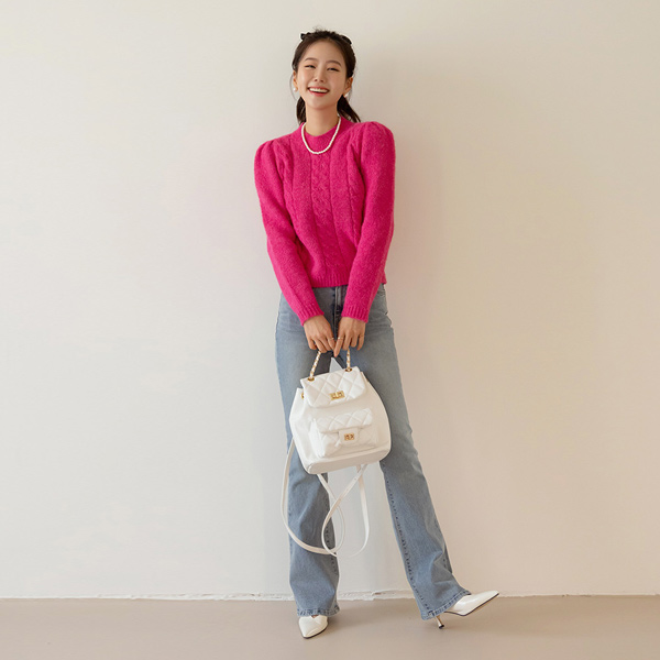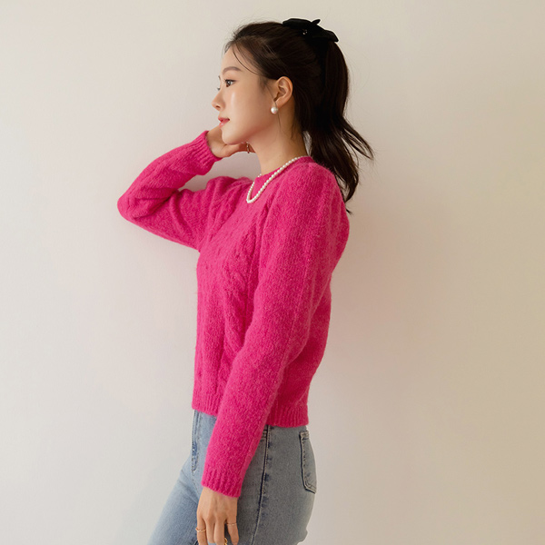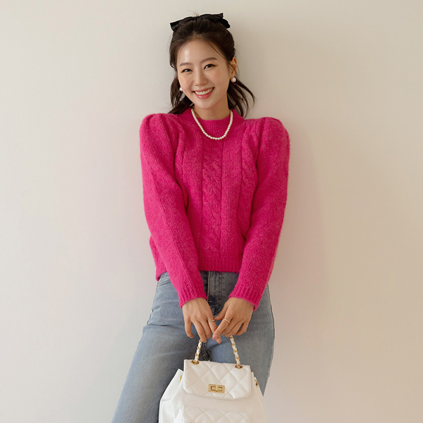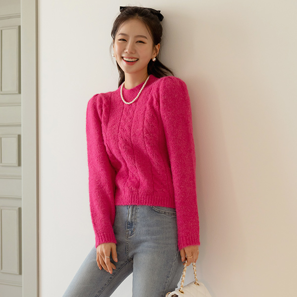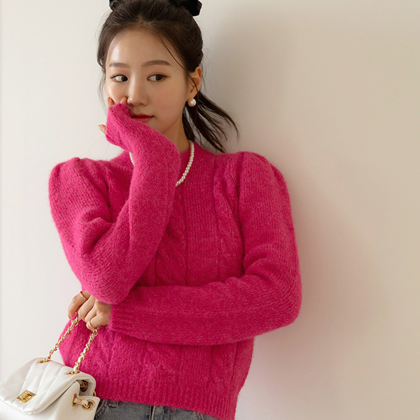 颜色 点缀 浪漫 泡泡袖 羊毛 针织衫