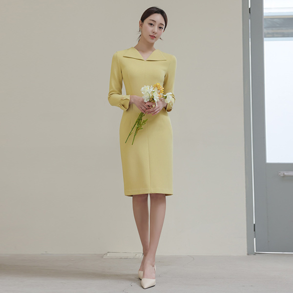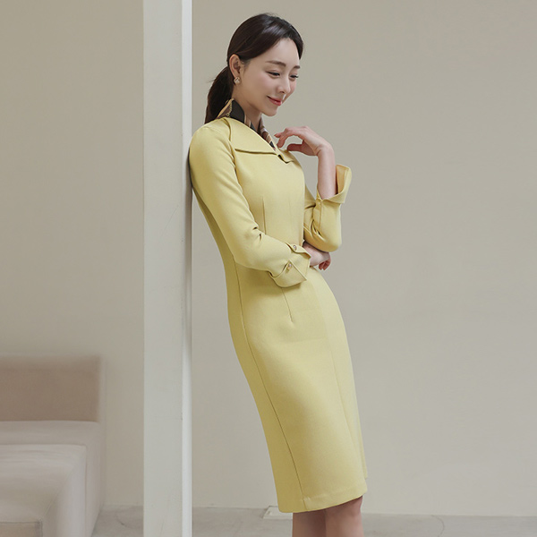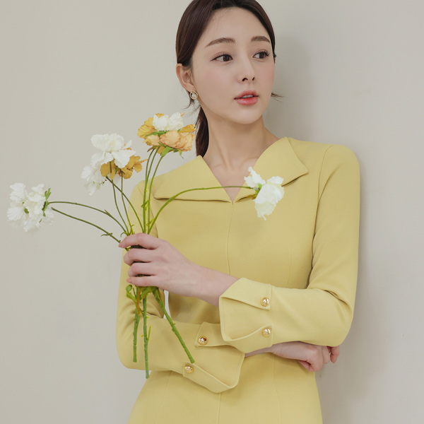 翼领 袖 黄金 扣子 羊毛 连衣裙