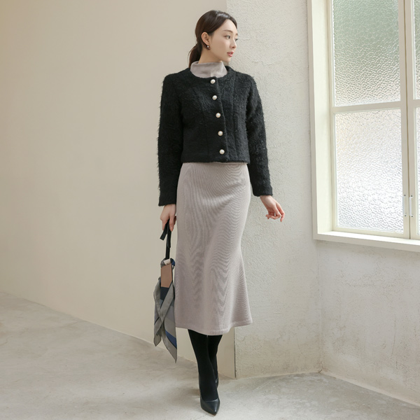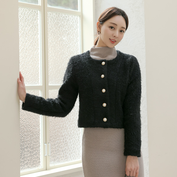 蓬松。 开叉线条 珍珠 扣子 羊毛 夹克