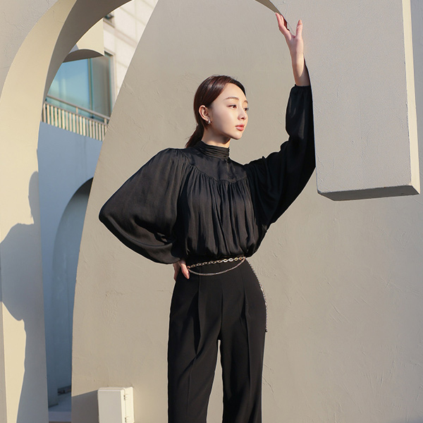 丝滑 高龄 灯笼袖 7分裤 松紧带 罩衫