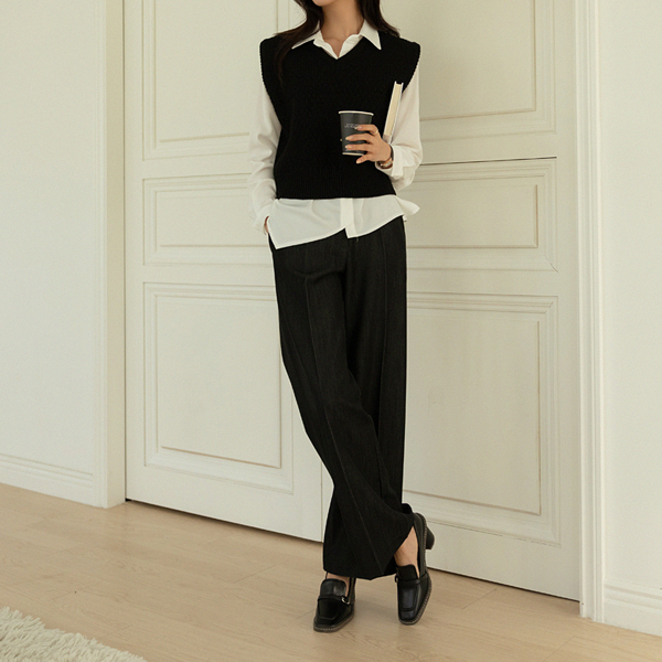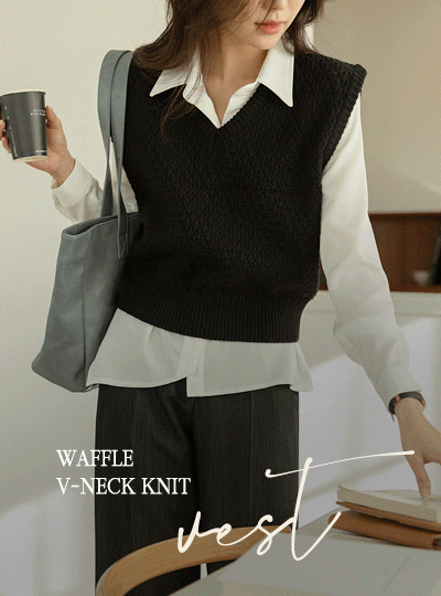 华夫格 V字领 针织衫 马甲