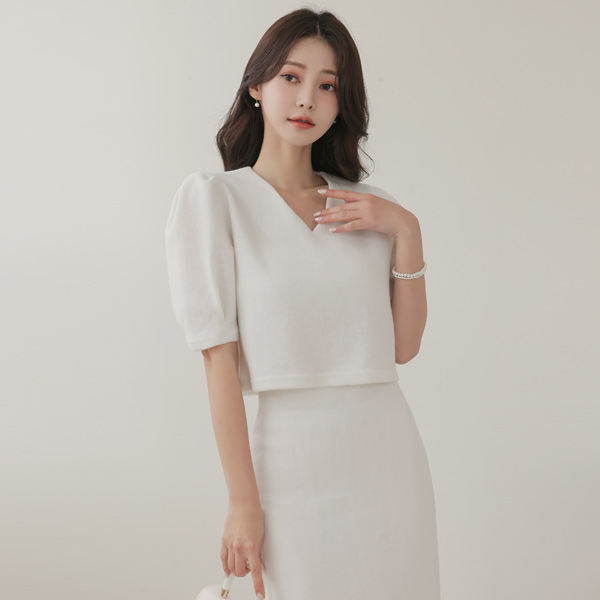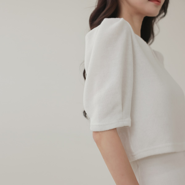 蓬松。 拉绒 泡泡袖 袖 7分裤 T恤衫