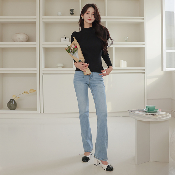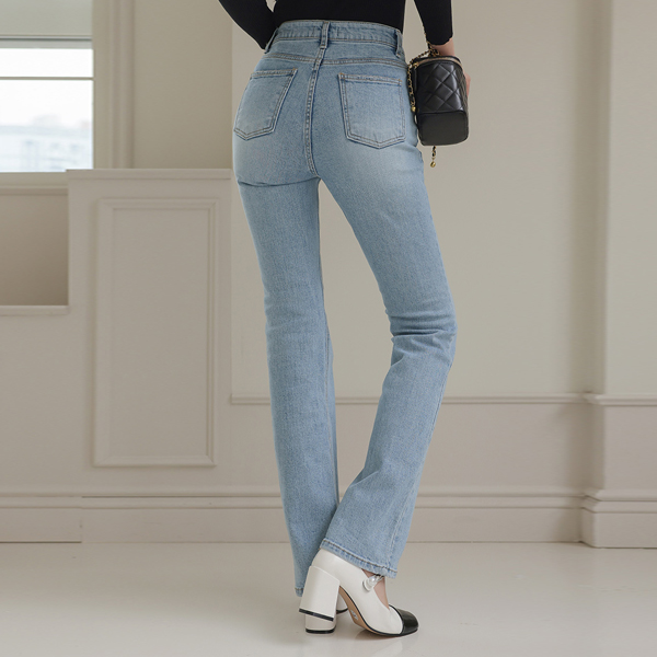 White 水洗 休闲风格 喇叭 弹力 牛仔色 裤子