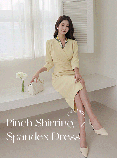 不规则 领子 侧纽 芬奇 褶皱 弹力 连衣裙(7分)
