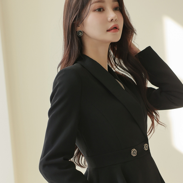 斜线 ODE 华丽 交叉领 弹力 连衣裙(长袖)