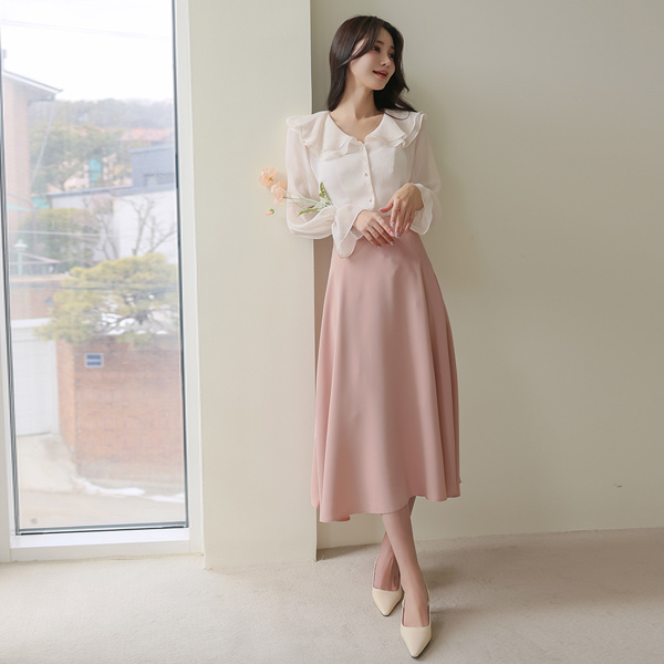 All Day 高腰 长款 喇叭 裙子(spring)