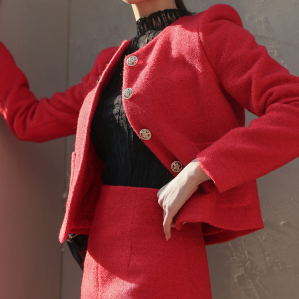 结子花式 粗呢 黄金 扣子 羊毛 夹克(绗缝里料)