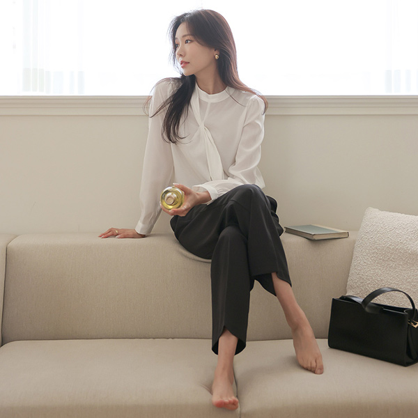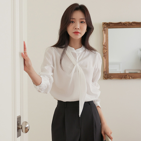 饰边 点缀 领带 有光泽 罩衫