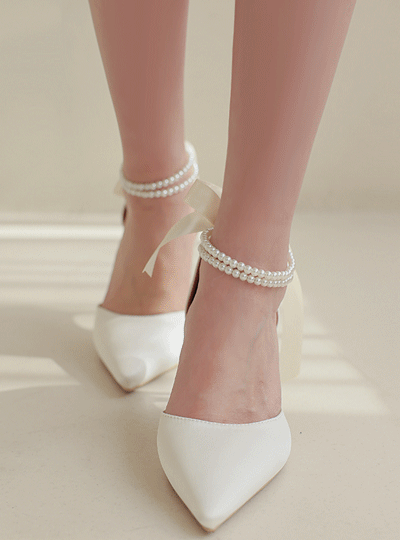 真丝 双 珍珠 皮条/束带 蝴蝶结 细高跟 高跟鞋