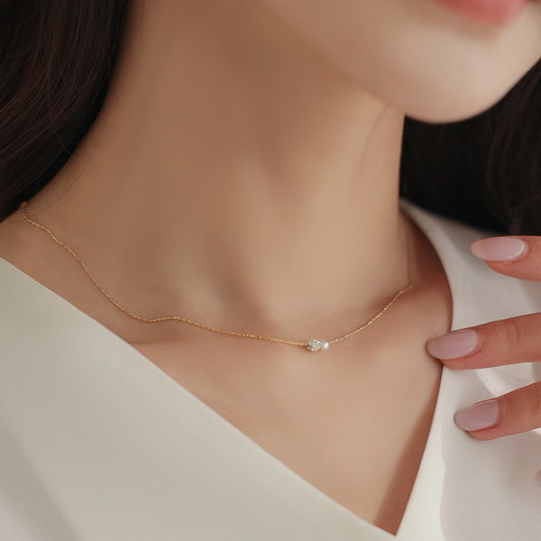 迷你 钻石球&珍珠 项链