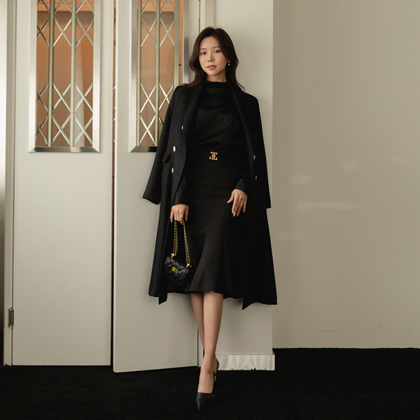 奢华裙 黄金 扣子 A字型 粗呢 大衣