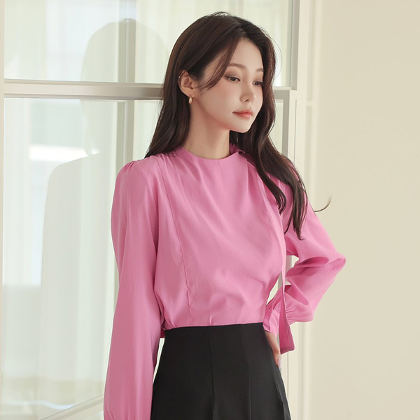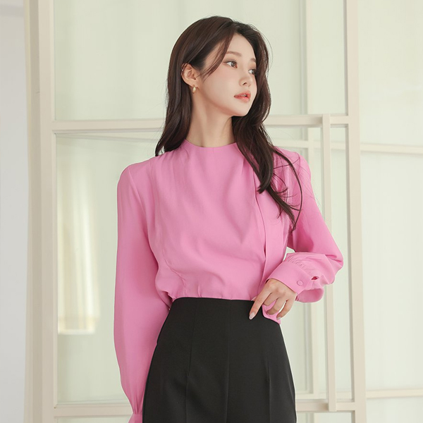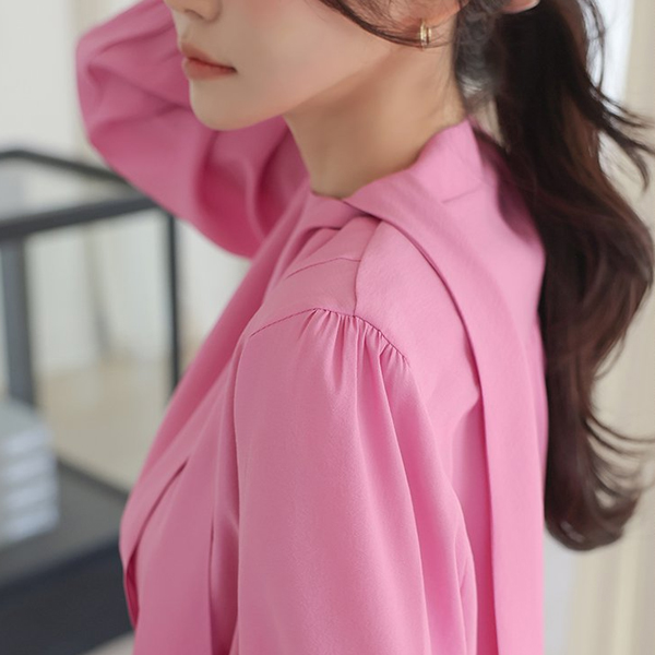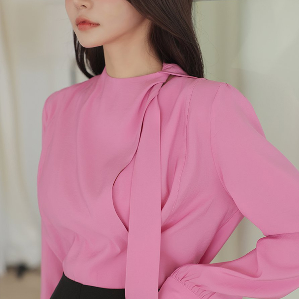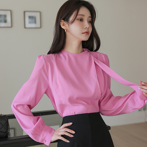 鲜明 侧纽 开叉 不规则 领带 罩衫