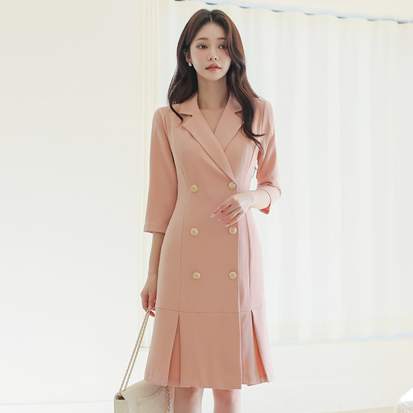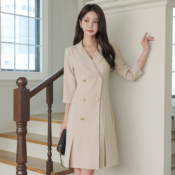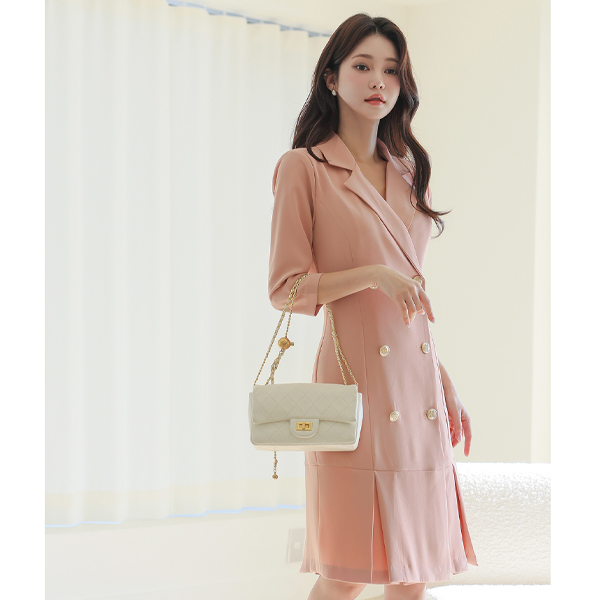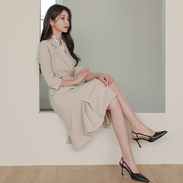 双 扣子 反向 褶边 连衣裙 Ⅱ