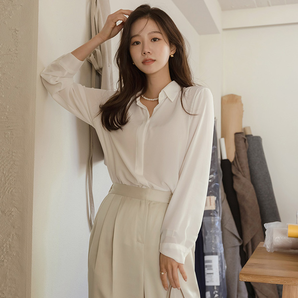 优雅 绸缎 宽松 后侧松紧带 宽松长裤