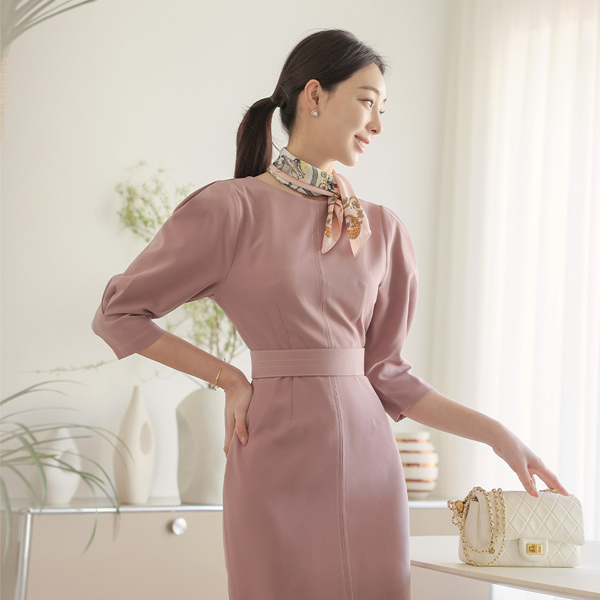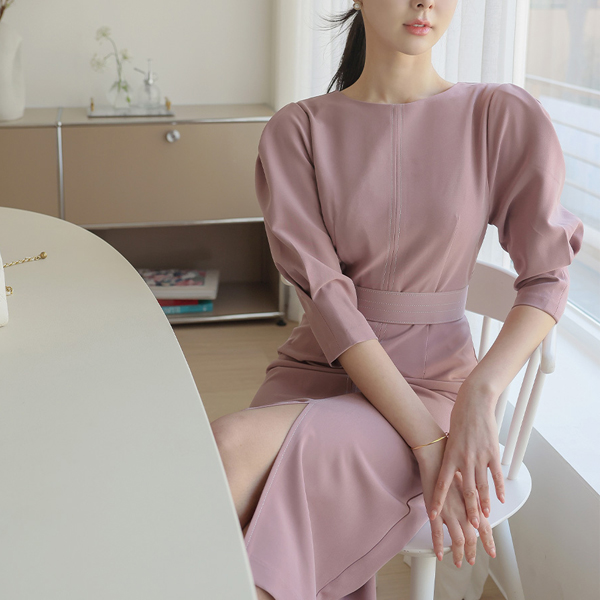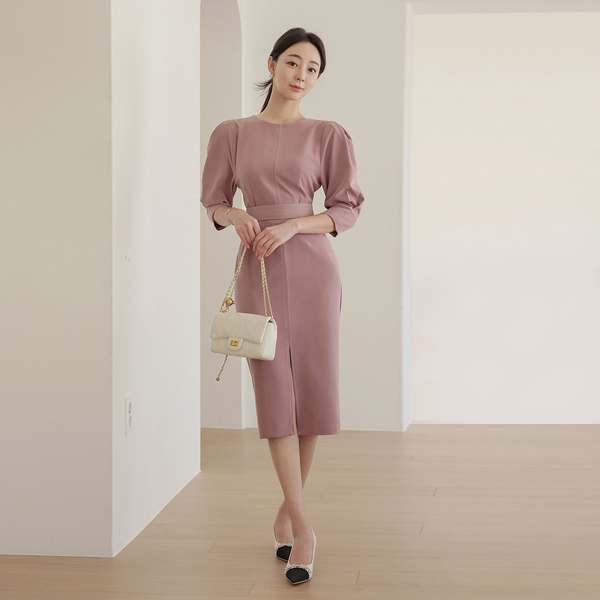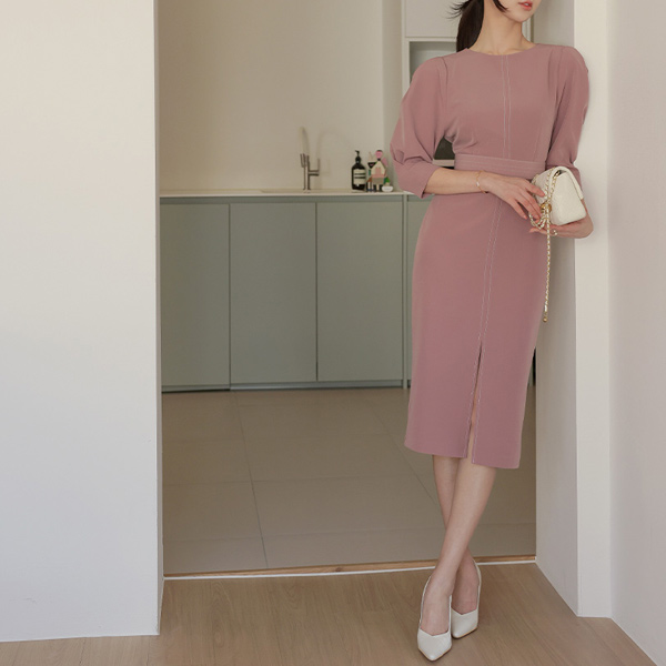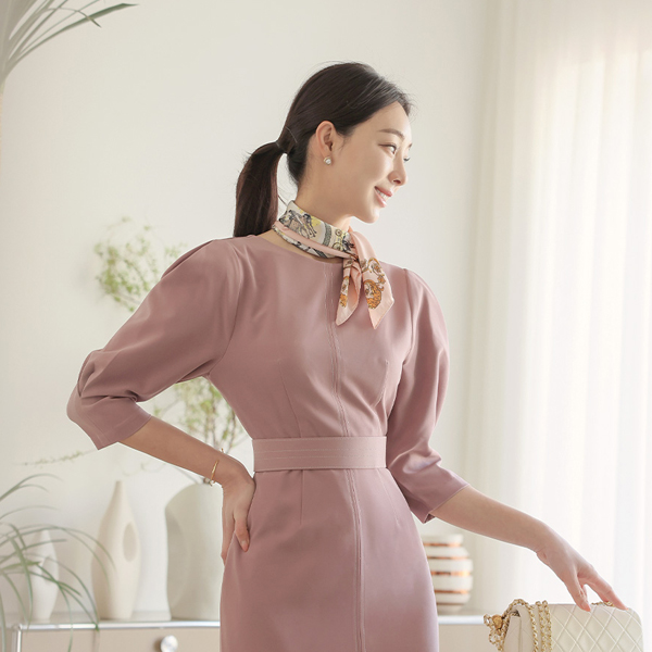 缝线 束带 细褶 泡泡袖 袖子 连衣裙(spring)