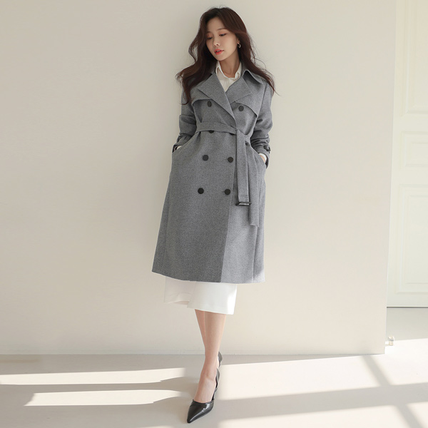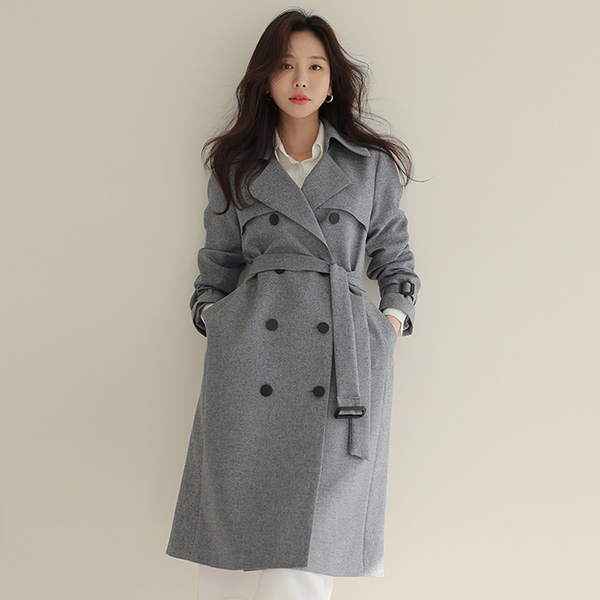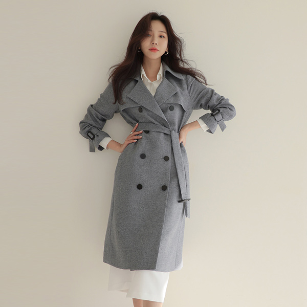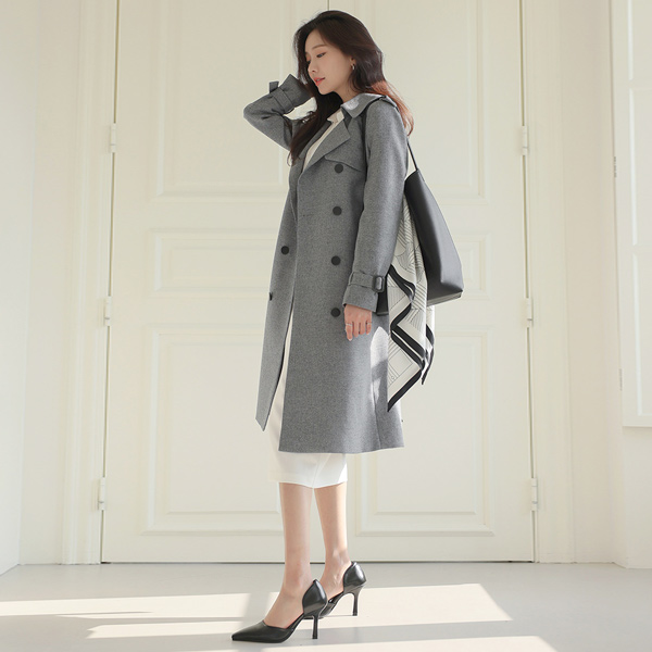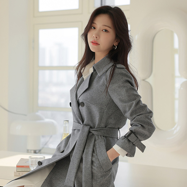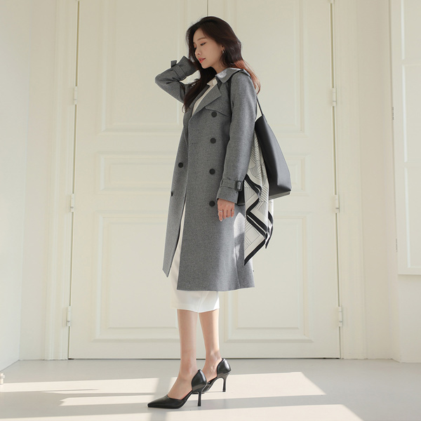 Black 扣子 点缀 软绵绵软的 风衣 大衣