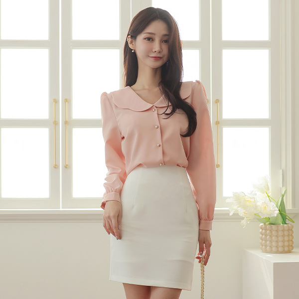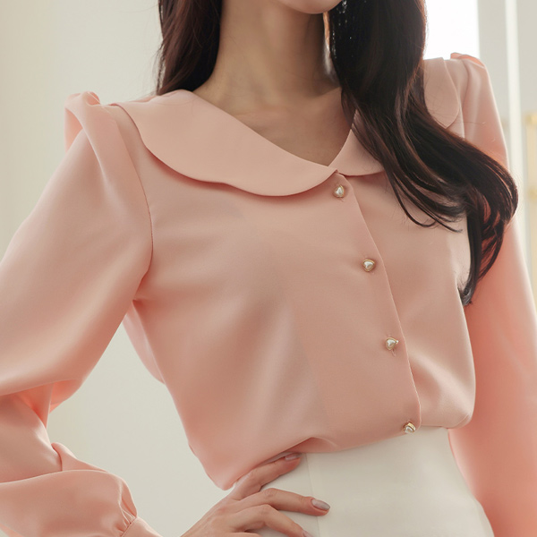 浪漫 领子 爱心 珍珠 扣子 罩衫