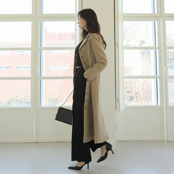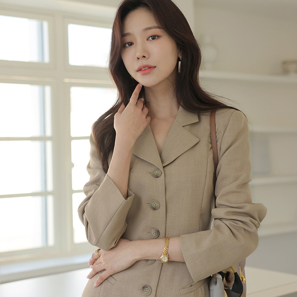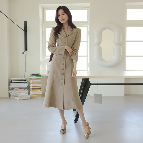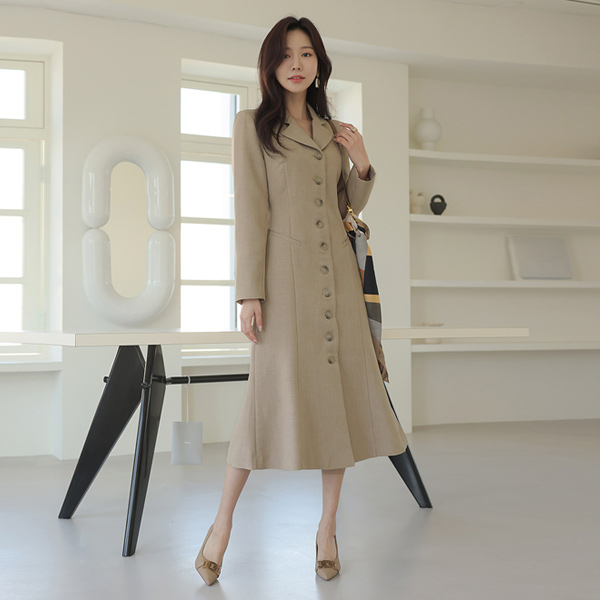 开叉 扣子 点缀 长款 连衣裙