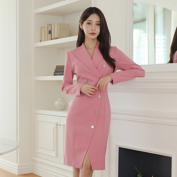 翼领 不规则 金属纽扣 开衩 弹力 连衣裙(spring)Ⅱ