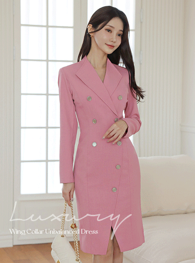 翼领 不规则 金属纽扣 开衩 弹力 连衣裙(spring)Ⅱ