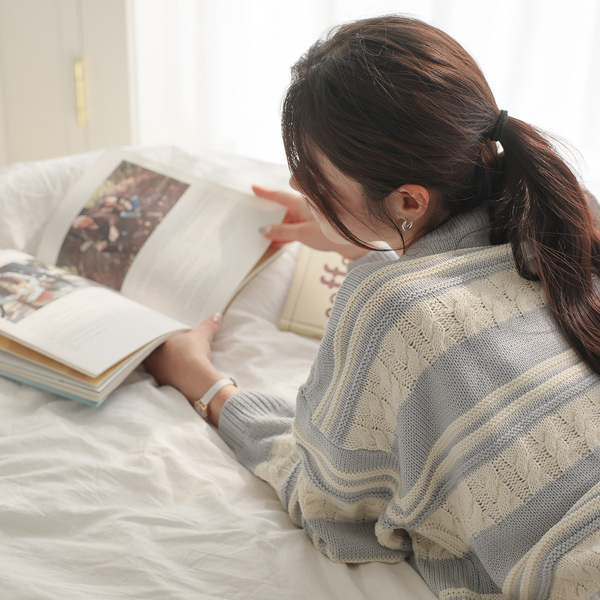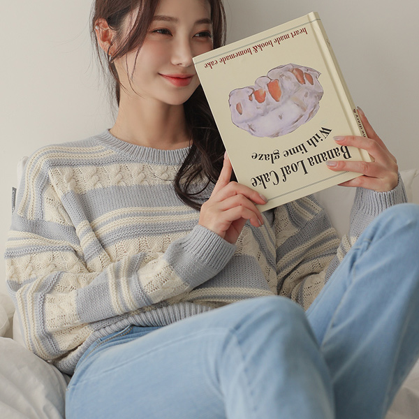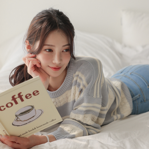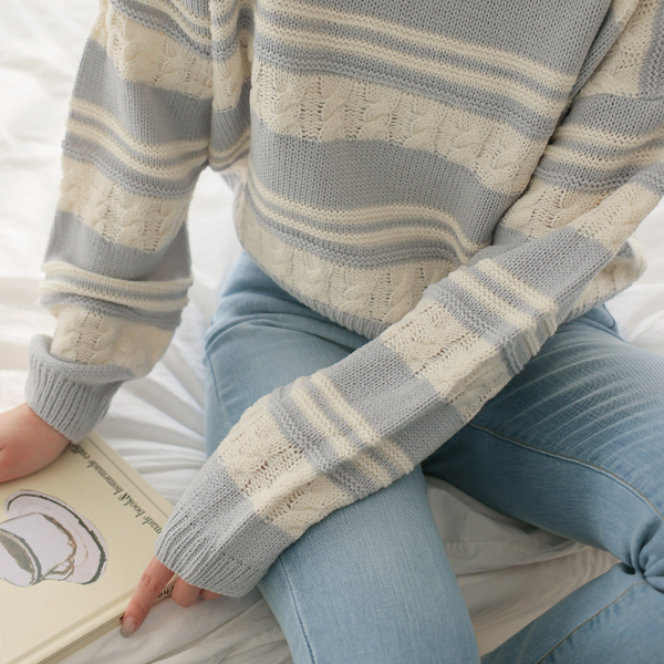 多色 条纹 缆绳 7分裤 针织衫