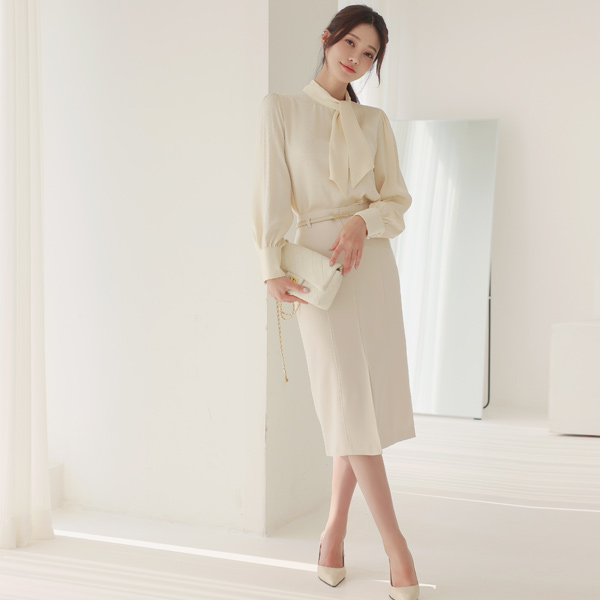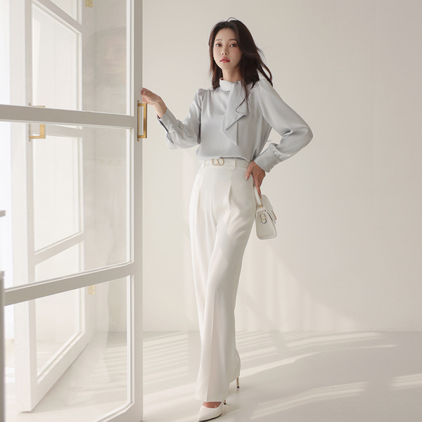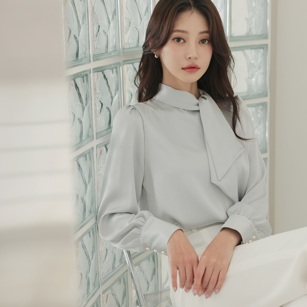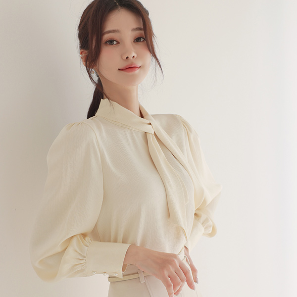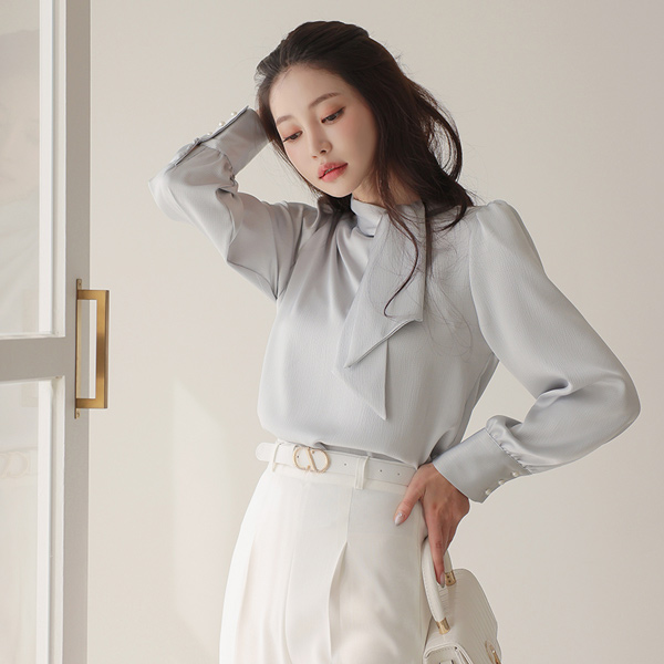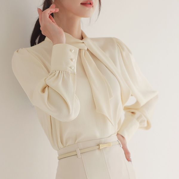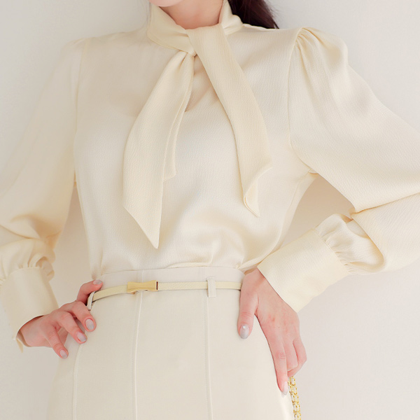 绸缎 圆点 压花 围巾领 罩衫