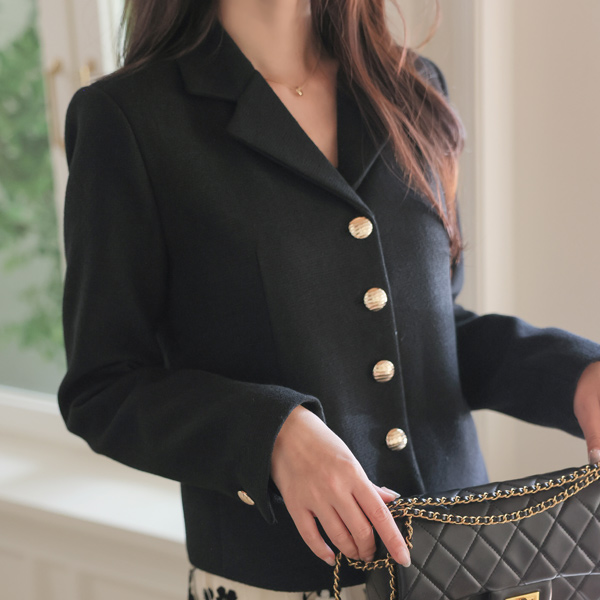 露西 哑光 黄金 扣子 粗呢 夹克