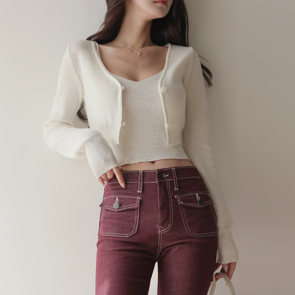 Pony 八字纹 V字领 7分裤 针织衫 开衫