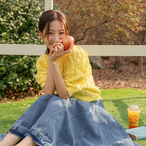 可爱 泡泡肩 颜色 针织衫