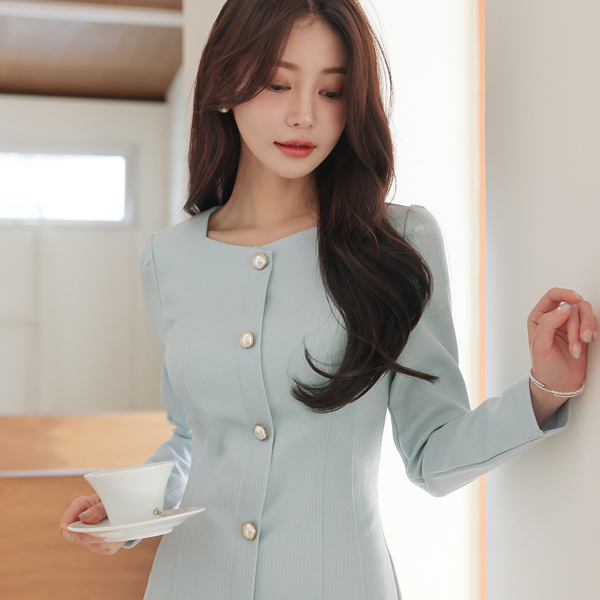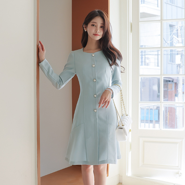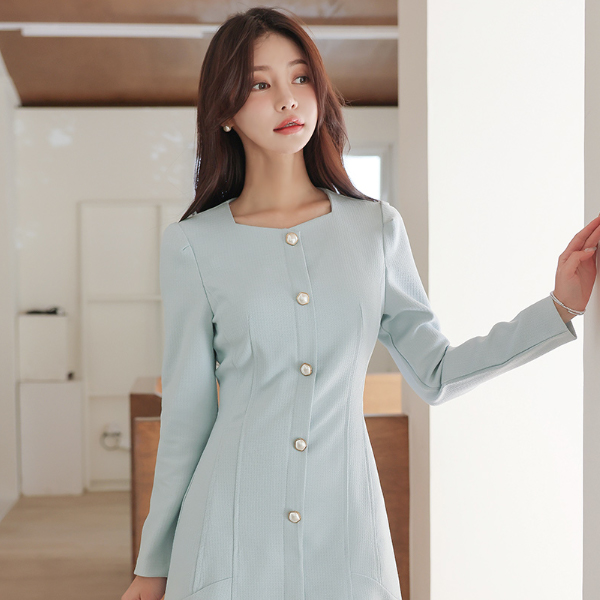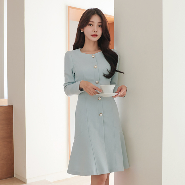 心形领 珍珠 扣子 开叉 美人鱼 连衣裙